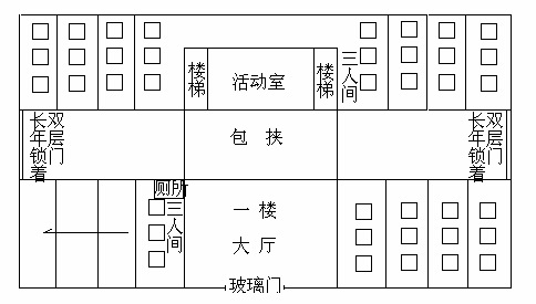 一楼主要由“包夹”监控法轮功学员居住,都是“三人间”,二个“包夹”监控一个法轮功学员在中间。