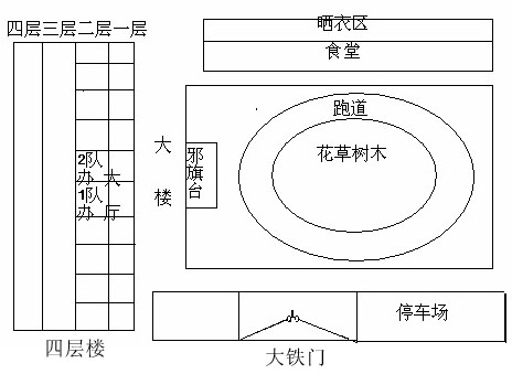 “司机旁前排一个大胖子下车与门卫交涉后进了门卫的小门,过了大约十五分钟,两扇大铁门打开了,车开到院内左边一栋四五层楼的门口,电控玻璃门打开后出来几个人,车上的人把车门打开了,把我拖下了车……”