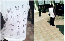 周向阳的母亲也已经六十开外,她为什么要在监狱门口穿上状衣?她在表达自己强烈愤慨的同时,也在呼吁世人对儿子命运的关注!报道中的插图,就是一位老人身穿状衣无助地在监狱门前控诉的照片。