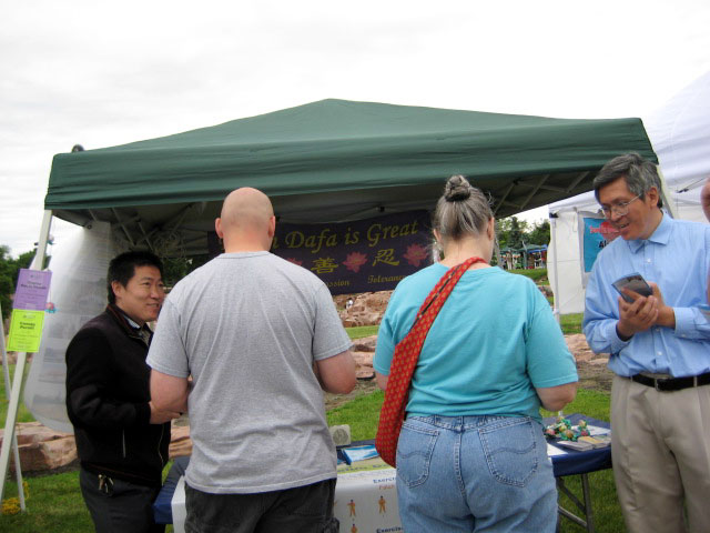 ![]() 苏福尔斯多元文化节上,法轮功学员向人们介绍功法 |