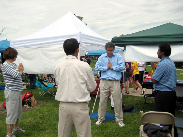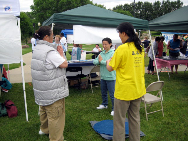 ![]() 苏福尔斯多元文化节上,人们纷纷学炼法轮功 |