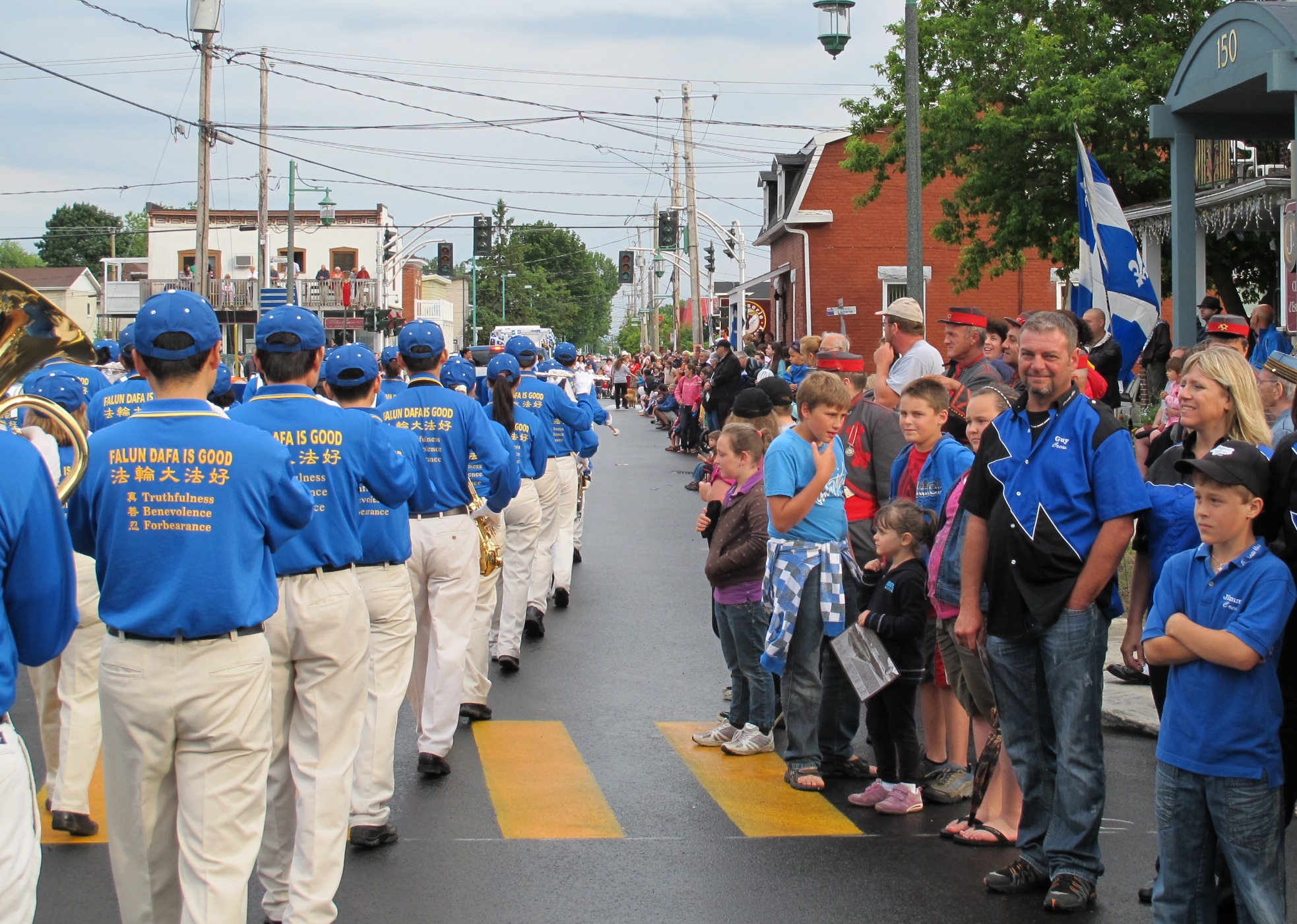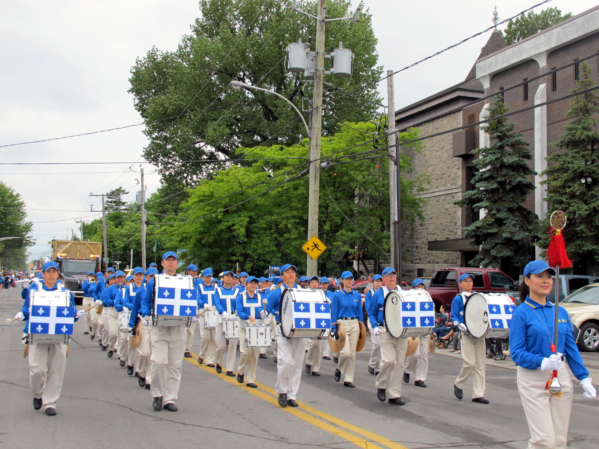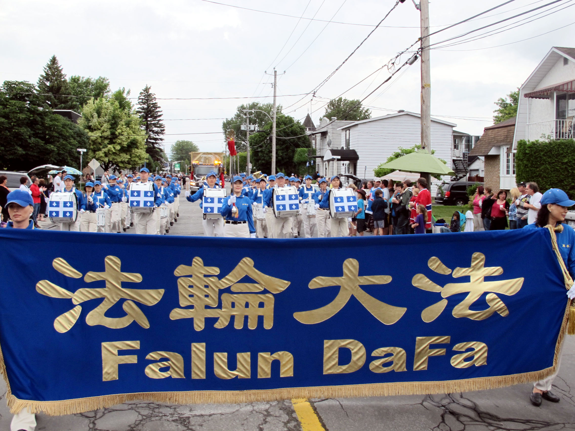 【明慧网二零一一年六月二十七日】(明慧记者肖妍蒙特利尔报道)二零一一年六月二十四日是加拿大魁北克省省庆日,由渥太华和蒙特利尔法轮功学员组成的渥蒙天国乐团应邀参加了蒙特利尔西部瓦利菲尔德(Valleyfield)城的魁省省庆游行。整齐而阵容庞大的天国乐团令许多围观的瓦利菲尔德城民众纷纷问着相同的问题,“这么优秀的军乐团是从哪里来的?”“什么是法轮,法轮大法是什么?”