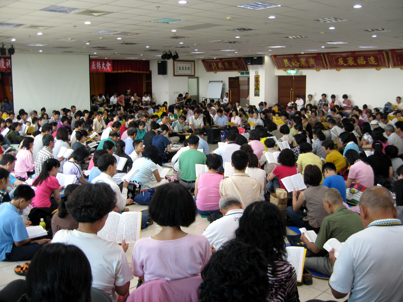 ![]() 中区法轮功学员在云林水利会大楼的礼堂中学法。 |