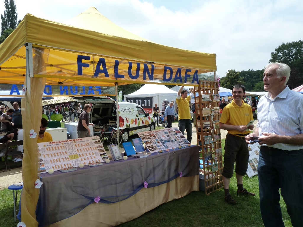 ![]() 梅赫伦市夏日节庆上的法轮功展台 |