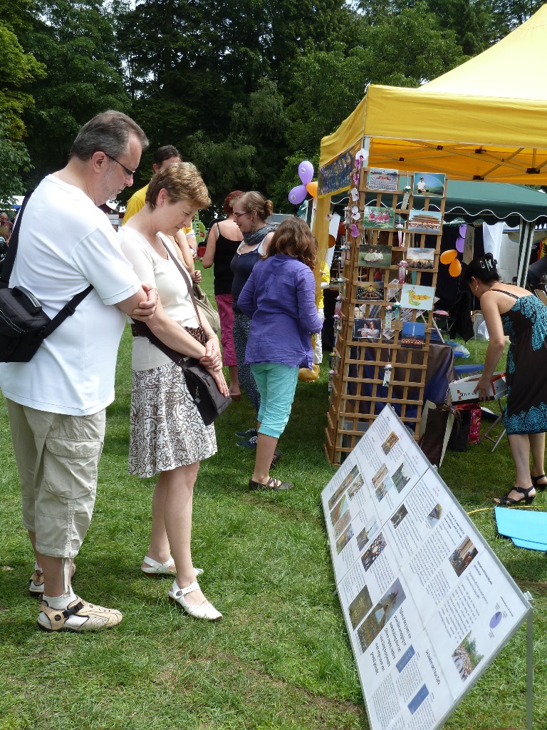 这天天气很好,阳光明媚,参加活动的游人很多。许多人阅读信息板上的法轮功介绍,通过和学员交谈了解法轮功。对功法感兴趣的人们,向学员了解梅赫伦炼功点的时间地点,表示希望学习法轮功。