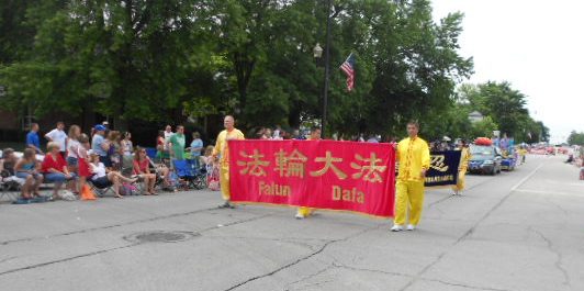 每年的游行是庆典活动的高潮。为了有个好的观看点,有不少人前一天就把椅子放好了。法轮大法学员的游行队伍,由法轮大法横幅开道,后面是演示五套功法的花车,还有介绍大法的横幅,所经之处不断听到观众的赞叹声:“法轮大法,真善忍,太美了。”有的观众招手,有的观众鼓掌,有的大声阅读横幅上的信息,现场观众互动气氛非常融洽、热烈。
