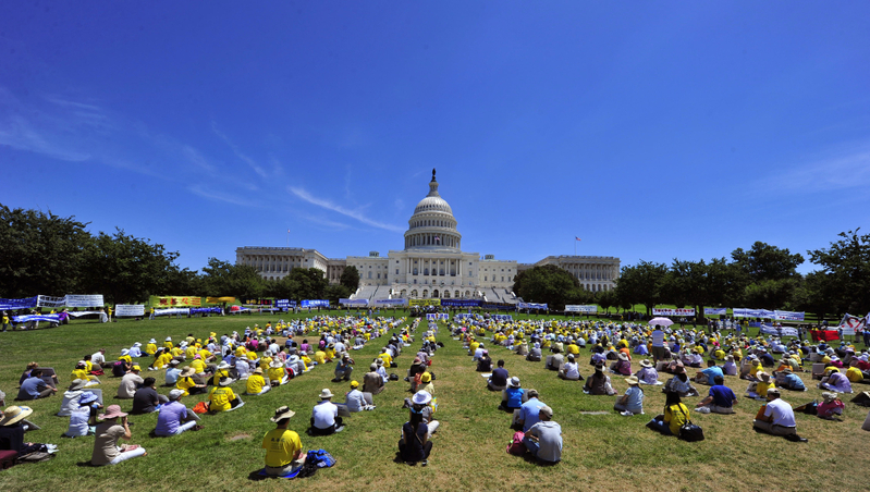 【明慧网二零一一年七月十六日】(明慧记者荷雨美国华府采访报道)在法轮功反迫害十二周年之际,二零一一年七月十四日,逾千名来自世界各地的法轮功学员在美国首都华府国会山前,在炎炎烈日下和平炼功、集会,呼吁各界共同制止中共的残酷迫害。美国国会议员、国际组织与非政府机构代表纷纷出席集会支持声援,很多过往市民和游人也为这宁静、充满正义力量的场景所吸引和震撼,赞扬法轮大法的真、善、忍原则给世界带来的美好与和平。