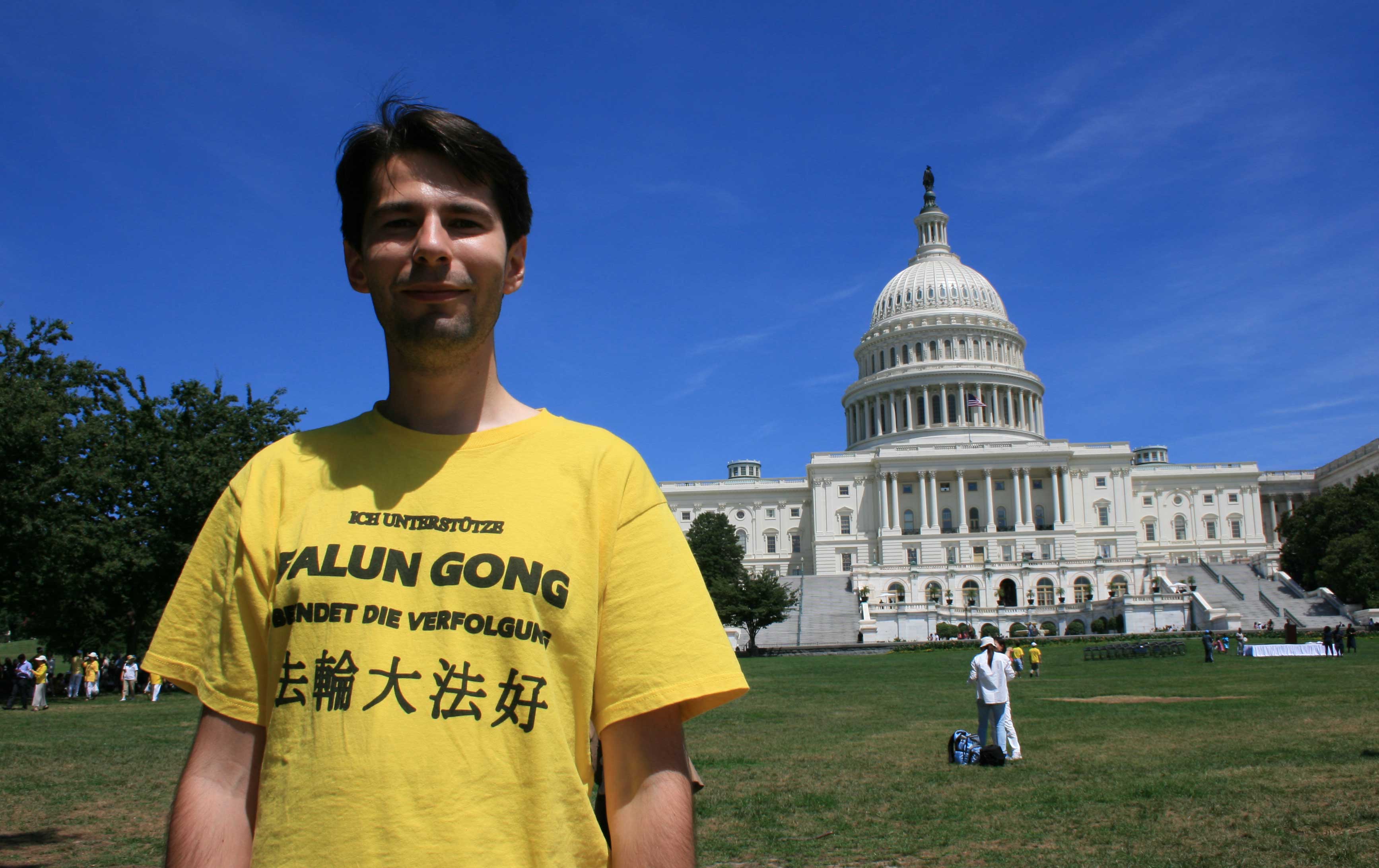 彼德•萨福德曼(Peter Sanftmann)来自德国,八年前他开始修炼法轮功。“修炼前,我为明天而忧虑到无法正常睡眠。自从修炼了大法,我的心踏实了很多,我对自己说,无论你有多少目标,重要的是今天成就了这些。”他认为:“‘真、善、忍’是世界上任何一个民族的基石。难得的是,这个基本的理论能够得以实践。世界上有很多看起来类似的理论,但是我感到唯有在法轮功里,(真、善、忍)这个信条真实地得到实践。例如在中国,数以千万计的法轮功学员面对生死仍能坚持真善忍。”当听到国会议员们的发言时,他被深深地感动,眼泪止不住流下来。他表示:“我来到华盛顿DC,就是为了参加这个呼吁制止在中国对法轮功迫害的集会。”