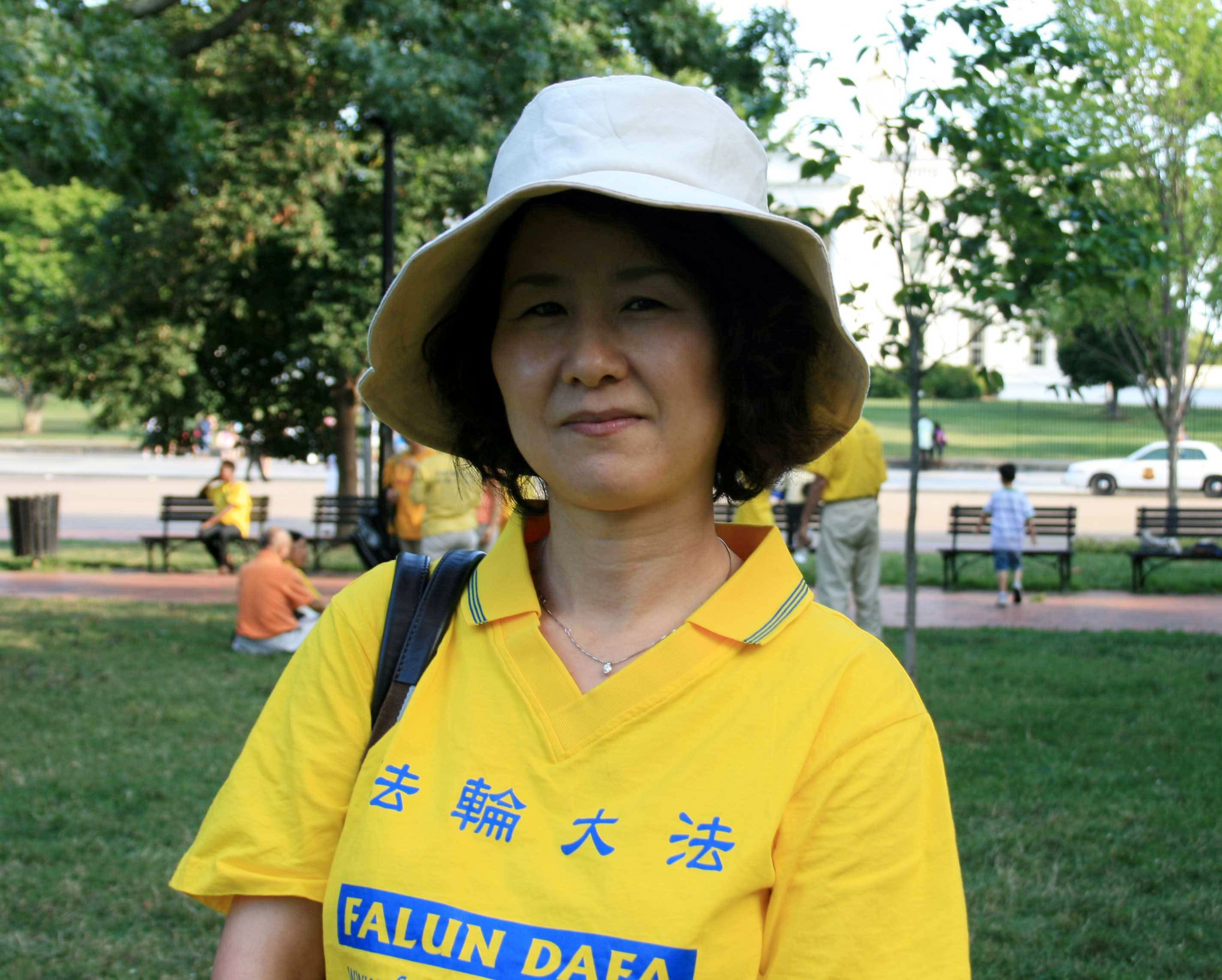 头一次到美国来参加活动的日本法轮功学员邵女士,从二零零三年开始修炼法轮功。来到美国跟这么多法轮功学员在一起炼功,她说感觉非常好。她来到华府的目的是希望“迫害早一日结束。”