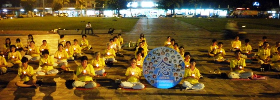 ![]() 法轮功学员在台湾花莲火车站前广场炼功 |