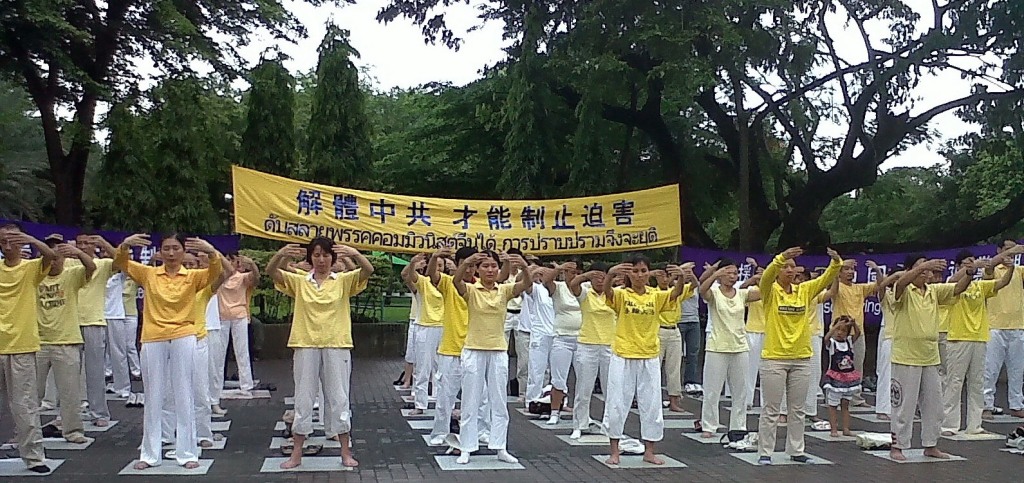 ![]() 法轮功学员在曼谷是乐园演示功法 |