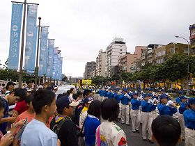 ![]() 游行队伍行至终点自由广场前,吸引许多游客(包括大陆、日本及欧洲的游客)及到广场休闲的台北市民 |