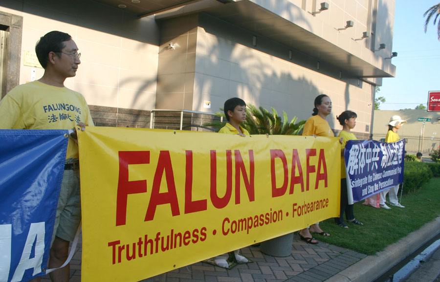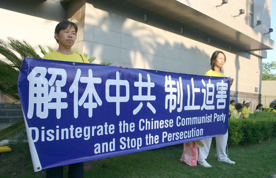 ![]() 法轮功学员在中领馆前抗议迫害 |