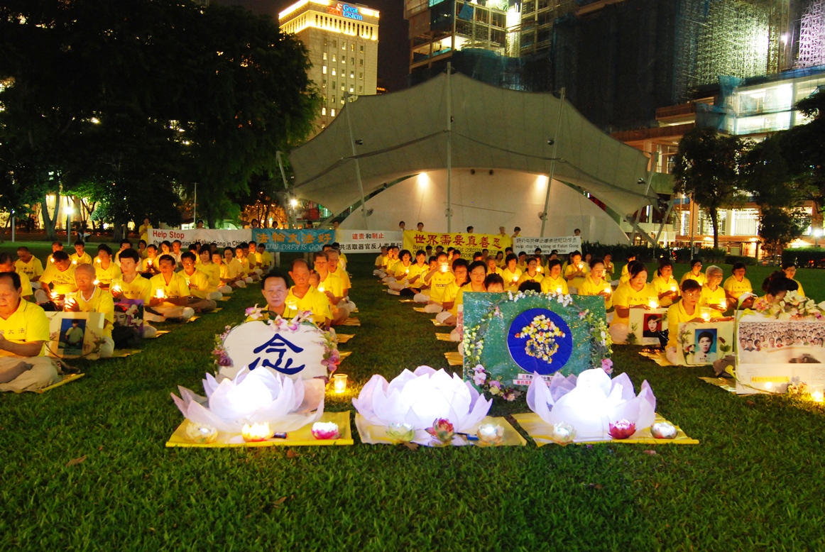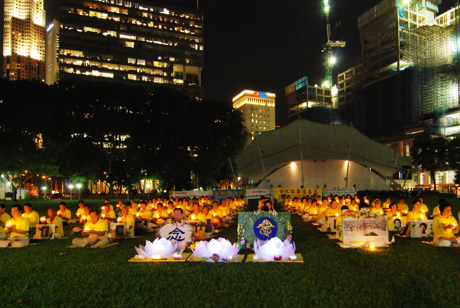 新加坡法轮功学员在芳林公园举行烛光悼念活动