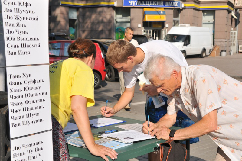 与往年不同的是,许多乌克兰的官方媒体采访了今年的反迫害活动,在整个采访过程中,他们为法轮功学员们大善大忍的精神所感动,在采访结束后纷纷签名支持反迫害活动。