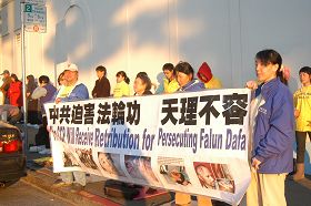 旧金山的法轮功学员在中领馆前举办“反迫害十二周年”烛光守夜,呼唤正义良知,制止迫害。