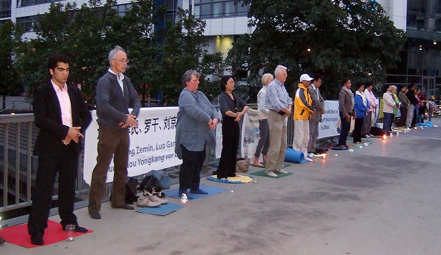 法轮功学员还在中共驻柏林大使馆前进行烛光悼念活动