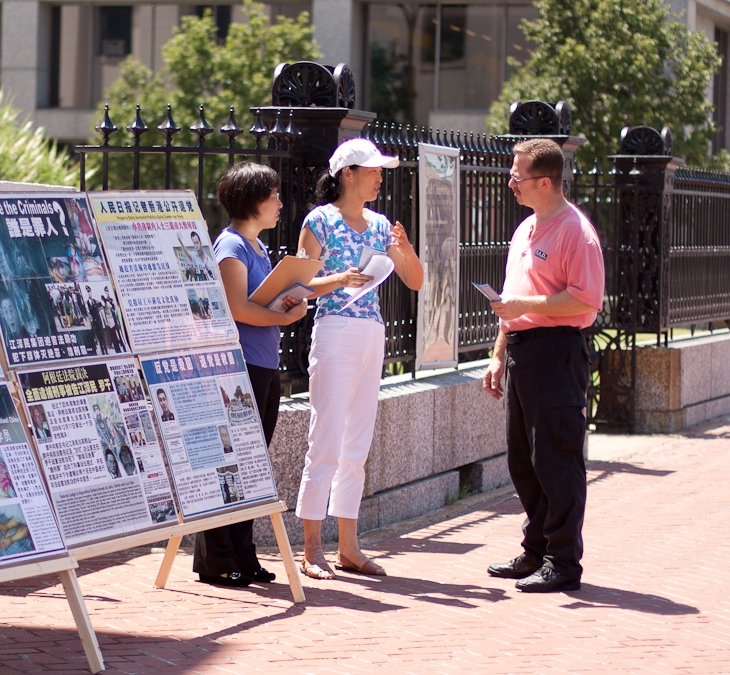 有一位先生,以前知道一些法轮功受迫害的真相,这次他亲自从学员这儿了解到了更多的真相。他充满同情地对学员说,“我会为你们祈祷,我也坚信,中共独裁必定会垮台,我在自己的有生之年一定会看到这个结果的。”