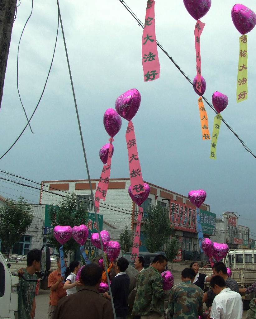 【明慧网二零一一年七月二十五日】二零一一年七月二十一日,大陆某地民众协助放飞真相气球,彩色气球的飘带上写着:“法轮大法好”、“天灭中共三退保命”等。