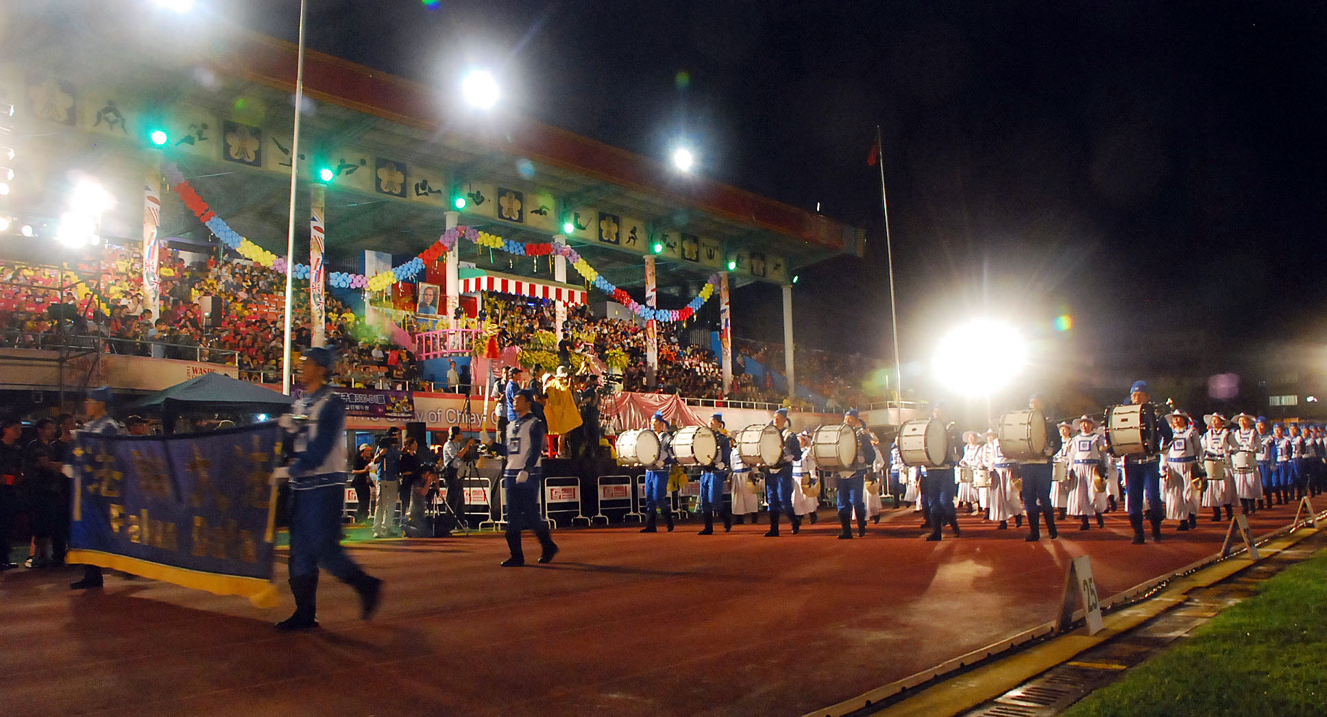 ![]() 天国乐团走进体育场,雄壮阵容引起欢声雷动,经过司令台被誉为最受欢迎队伍 |