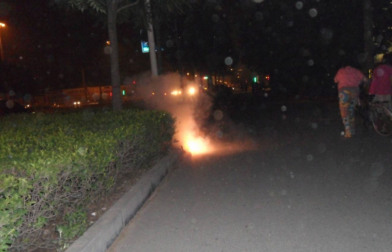 晚上经常看到乘凉的居民在便道上燃放的鞭炮。