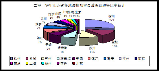 【明慧网二零一一年八月十一日】(明慧网通讯员江苏报道)本文根据明慧网曝光出来的江苏省法轮功学员被迫害信息,在明慧网二零一零年十二月三十一日《2010年江苏各地法轮功学员被迫害情况统计》一文所做粗略统计的基础上,结合二零一一年明慧网最新曝光的信息及对所有信息的进一步查询和细化,经不完全统计,得出二零一零年江苏省法轮功学员被迫害的部份情况概述。