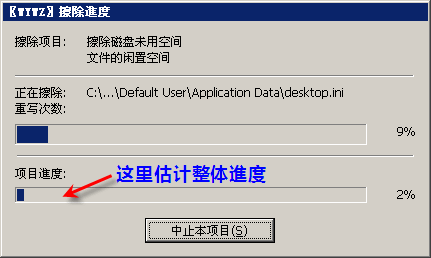 擦除的时候会显示进度(如下图),擦除时间较长(具体看磁盘大小),可以在这个期间合理安排时间,例如做一些不依赖于计算机的事情,或者整理阅读一些资料等。