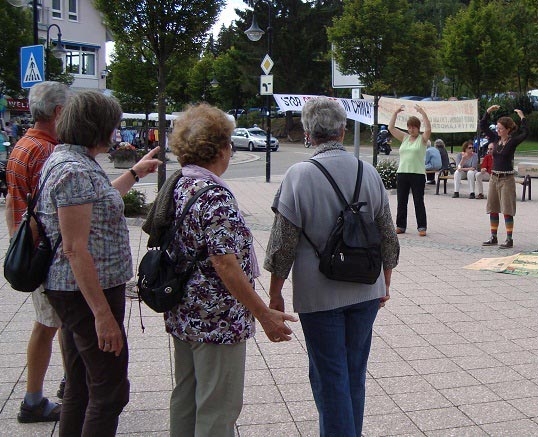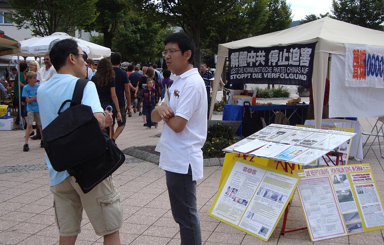 一位德国中年男子对法轮功学员说:谢谢,请继续努力!学员问:为什么说谢谢?那位先生说:你们把最重要的信息告诉给世界,等于在向世界敲警钟,小心中共!因为它正在干着魔鬼的勾当。必须尽早制止它!这种邪恶的反人类暴行,对我们每一个人都是威胁。