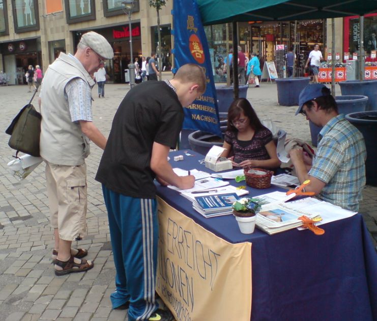 很多德国民众在了解了“三退大潮”的背景后,都攥起了拳头表示鼓励和支持,他们说:“我们德国人都抛弃了共产党,中国人民也应该抛弃它!”