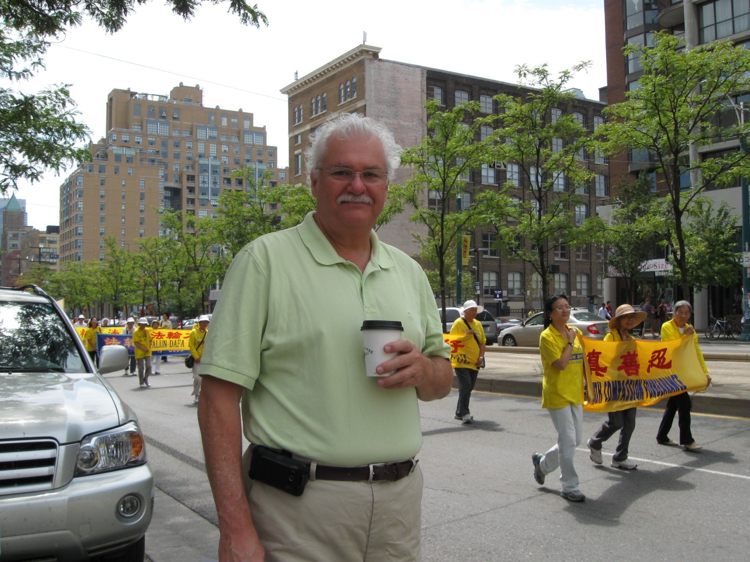 来自美国得克萨斯的贝内特(Bennett)说:“很壮观的游行,我相信法轮功,我也相信中共将会灭亡。任何的迫害都必须停止!”