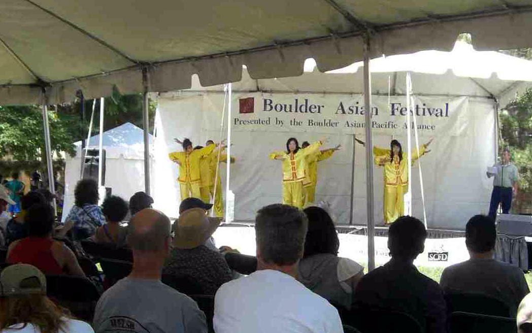 法轮大法学员在第十七届美国科罗拉多州波德市亚洲节上展示功法