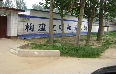 定兴县肖村洗脑班(“防范办”基地)原是肖村乡敬老院,有东、西两个门,分前后院。现敬老院的前院被邪党人员利用来迫害法轮功学员。门口没有挂牌子,门上有摄像头,大门左面的墙上喷有“维护社会安定团结”,右面的墙上喷有“构建文明和谐家园”的字样。这座大门平时紧闭,给人的感觉这里是个废弃的院落。然而这座紧闭的大门内,正在迫害修“真善忍”的好人。东门没有门楼,是敬老院的人走的。肖村洗脑班的头目是王俊义。