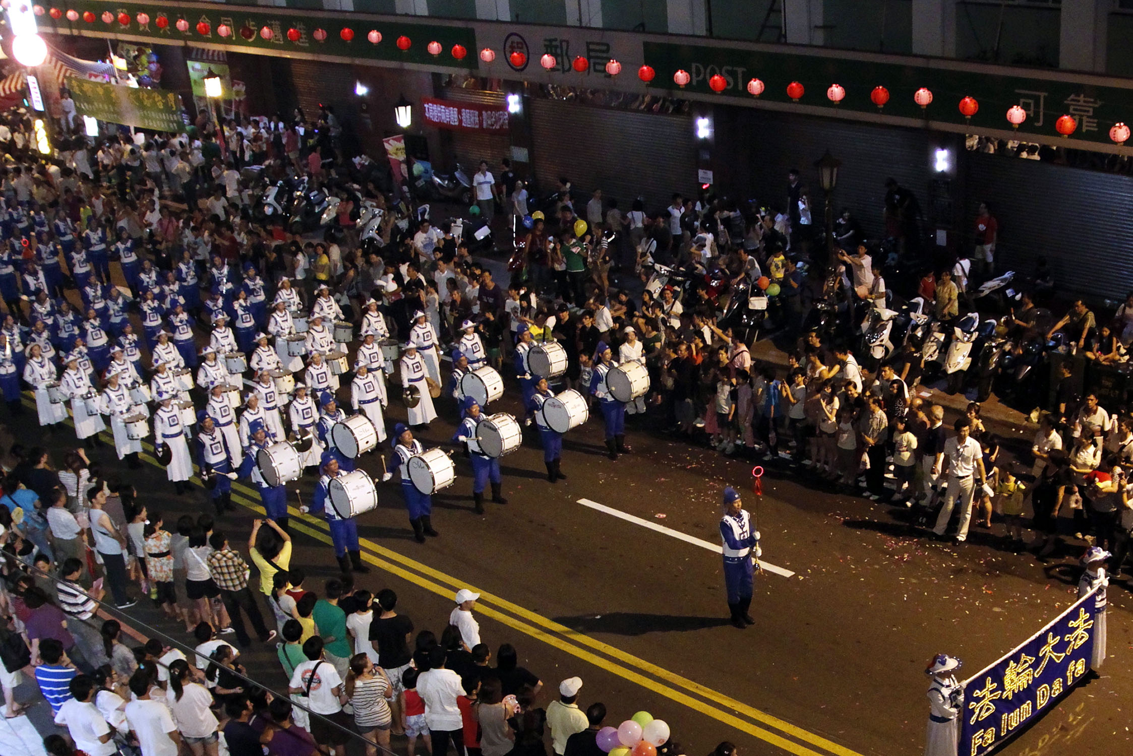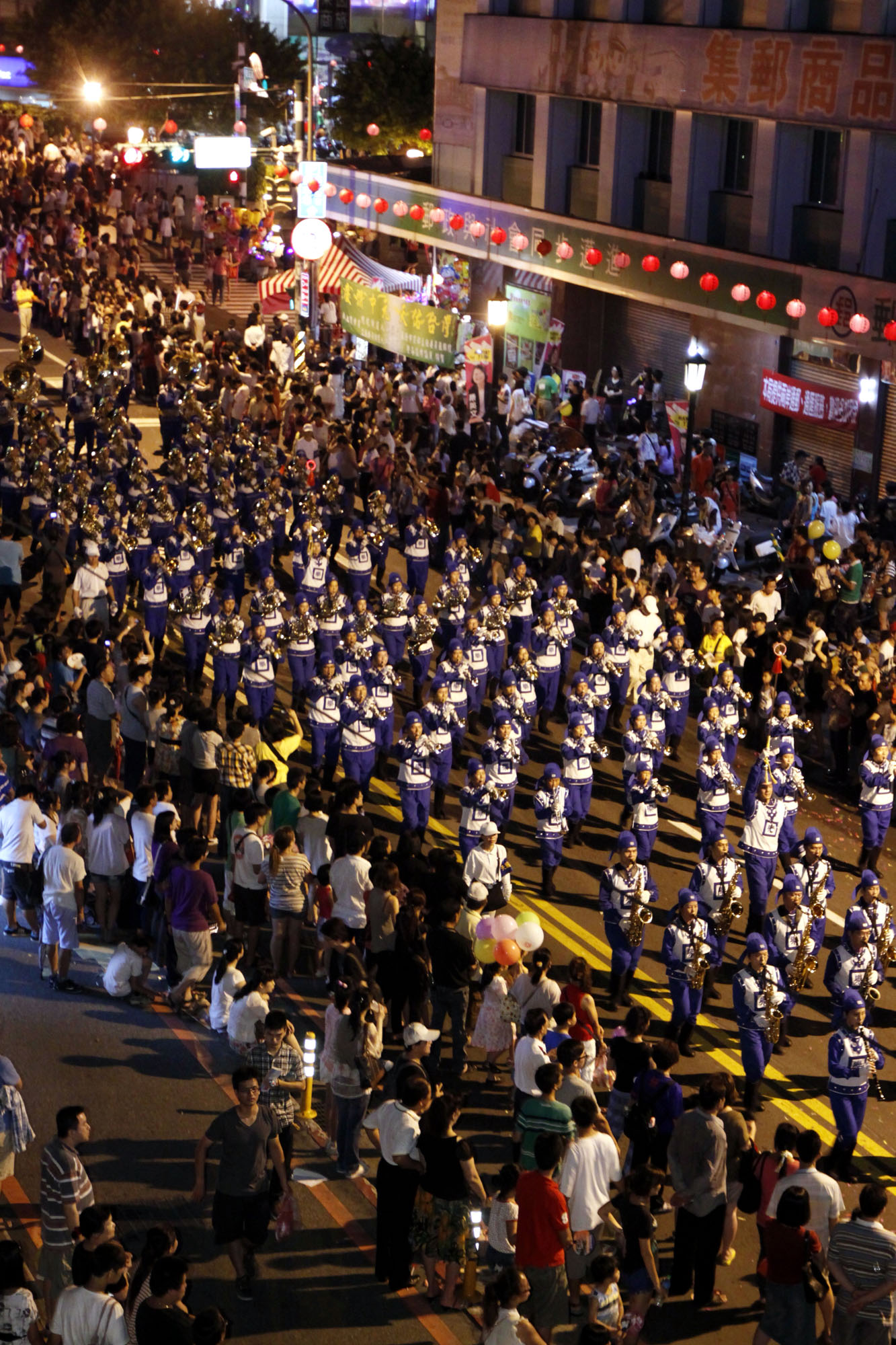 ![]() 二零一一年八月十三日晚间,天国乐团参加基隆中元祭放水灯游行 |