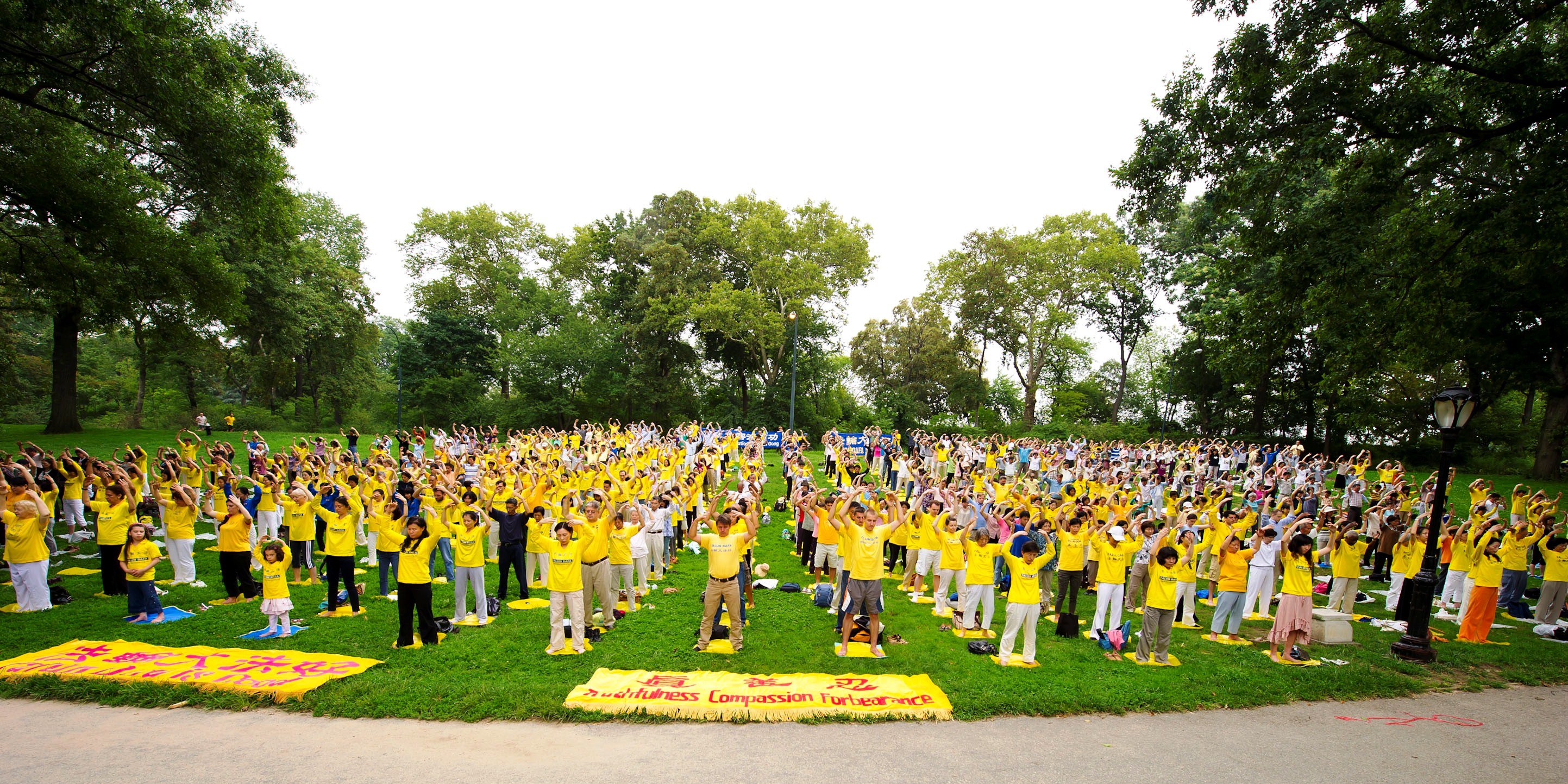![]() 法轮功学员在纽约曼哈顿中央公园集体炼功 |