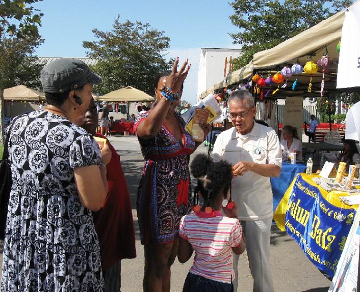 ![]() 人们在圣地亚哥中秋灯节上现场学炼法轮功 |