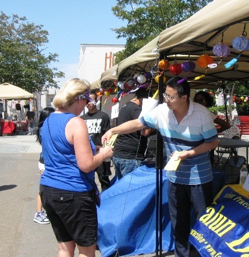 ![]() 在圣地亚哥中秋灯节上设置展位介绍法轮功 |