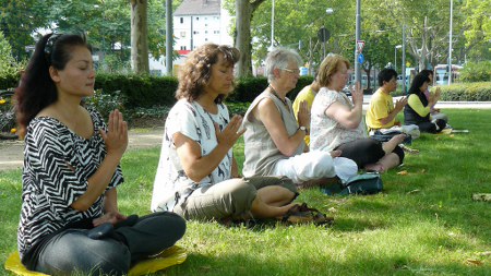 【明慧网二零一一年八月九日】二零一一年八月二日,原位于德国法兰克福中部的中共驻法兰克福领事馆迁至城南。法轮功学员当日在中领馆新址前举行和平抗议活动。参加这次活动的中西方学员在音乐声中炼功长达十小时。很长一段时间以来,法轮功学员坚持每周五都在中领馆前举办抗议中共迫害法轮功的活动。