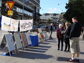 二零一一年九月十日,正值金秋时节,北国芬兰难得的好天气,法轮功学员像往常一样,再次汇聚在赫尔辛基火车站广场,举行讲真相反迫害活动,吸引了不少过往行人。