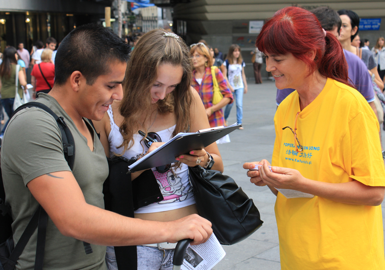 人们纷纷拿取法轮功真相传单并咨询法轮功的更多信息。当得知法轮功在中国遭受残酷迫害,而自己的签名可以帮助制止这种迫害时,人们纷纷在反迫害签名表上郑重签下自己的名字和身份证号码。