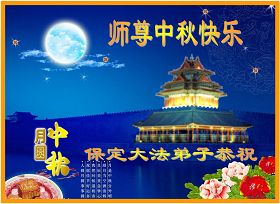 值此中秋佳节之际,中国大陆各地大法弟子纷纷寄来贺卡贺词,恭祝慈悲伟大的师尊中秋快乐。