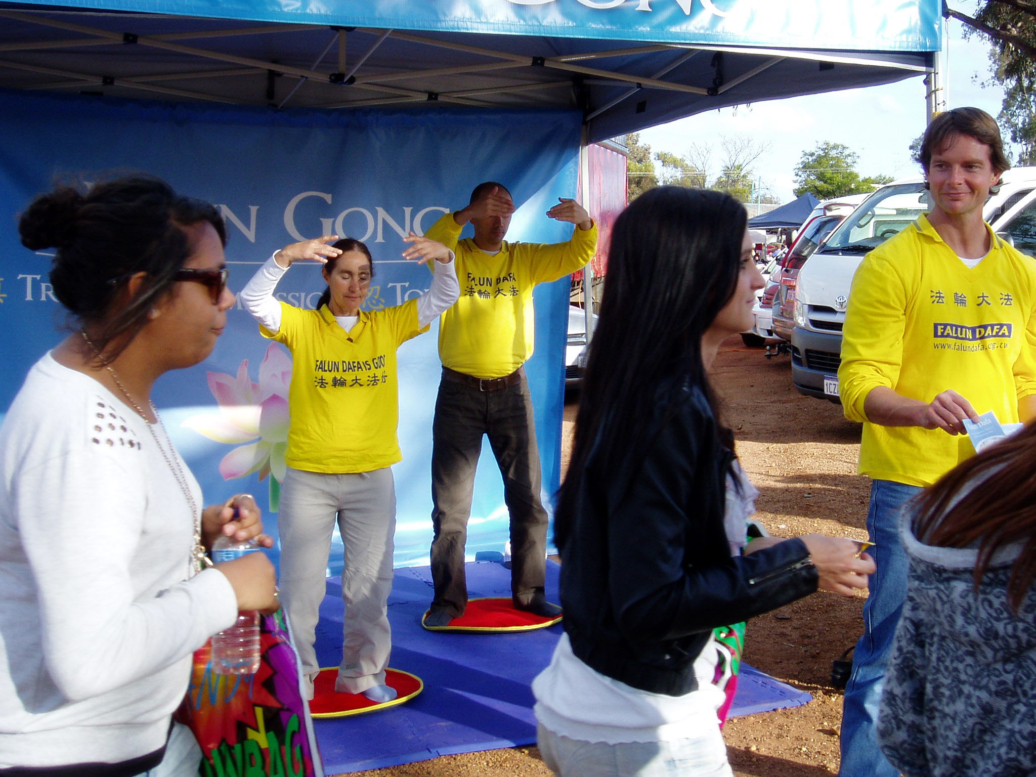 ![]() 西澳法轮功学员在集市上传播大法美好 |