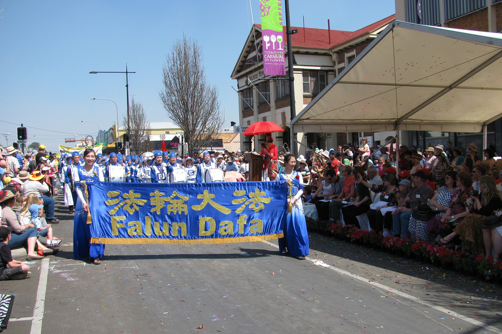 当天阳光明媚,该庆典活动已有六十二年的历史,是澳洲历史最长、规模最大的花节庆典活动,游行庆典活动由图文巴地区政府主持,今年共有五十七个团体参加,法轮功团体是第十三年应邀参加。