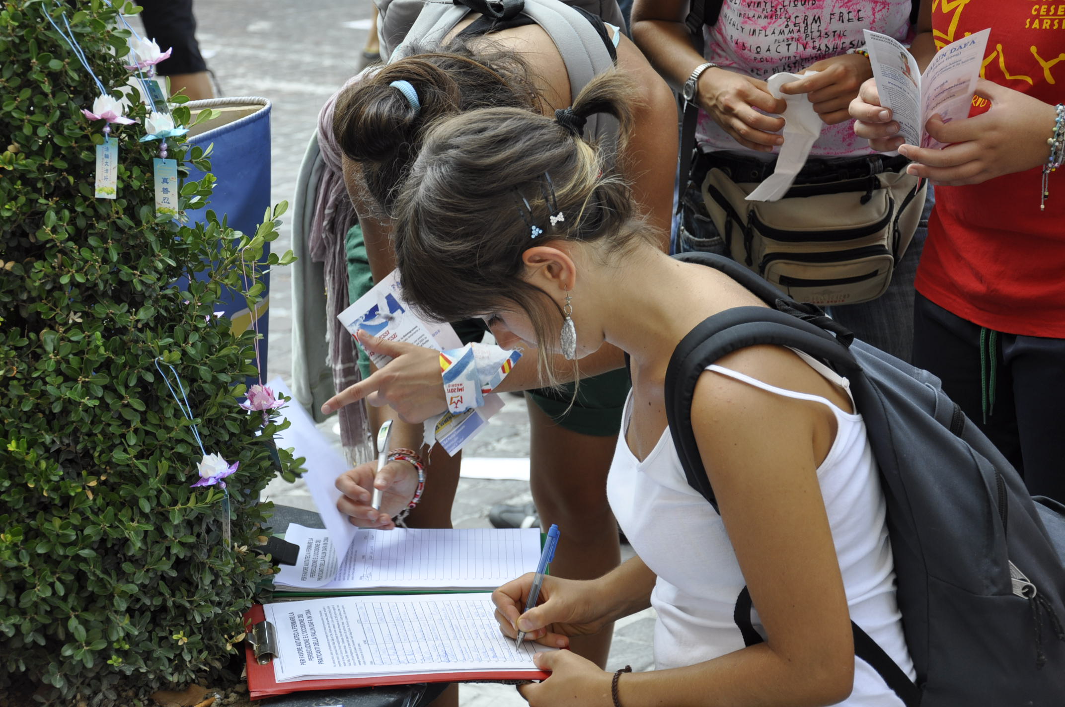 听了学员的解释,人群中一位先生点头称是说:“我明白了,我可以签名吗?”另一位中年妇女当看到“解体中共,停止迫害”的展板时,笑逐颜开地说:“这办法灵!可以解体中共!”明白真相后,善良的意大利民众排队在签名簿上签名,表达他们对法轮功的正义支持。
