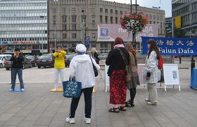 二零一一年九月三日是芬兰警察日,法轮功学员在芬兰赫尔辛基中心火车站广场举行活动,向人们介绍法轮功的美好,揭露中共对法轮功长达十二年的残酷迫害。