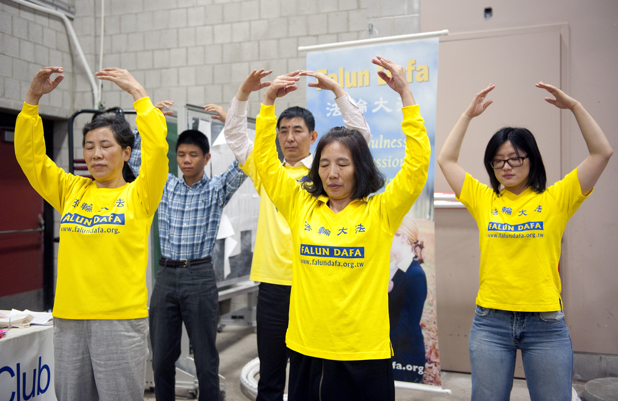 法轮功学员在麻省理工学院社团迎新活动上展示法轮功五套功法