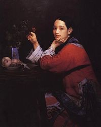 王明月,一九六二年生于北京,一九九一年毕业于中央美术学院油画系研修班,专业从事油画创作。一九九五年,王明月的作品《三月》、《红珊瑚》、《藏童》等曾参加中国美术馆举办的《北京之风》油画展,部份作品刊登在《中国美术》、《十月》、《新艺术家》等报刊杂志上,并多次参加国内外油画邀请展及拍卖,多数作品被美术馆及私人收藏。二零零零年,应邀为英国前首相西斯先生本人画像并前往英国参加文化艺术交流,二零零四年受邀在英国举办个人画展,《梦花魂》系列于开展当天全部售出。同年,作品《寻春》在十月十五日国际艺苑举办的“同路而行”油画展中展出,备受关注。