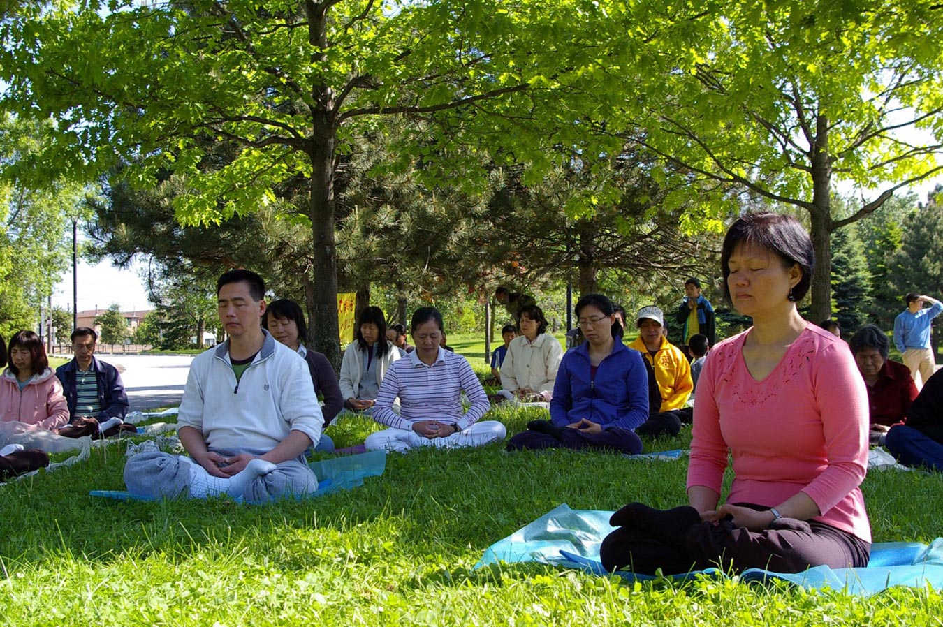 在法轮大法网站(falundafa.org)上,加拿大有三十三个城市有义务联系人的信息,在其中的多伦多市,美丽径公园是众多室外炼功点中规模较大的一个。每个周六及周日的上午,公园里都有法轮功学员在一起炼功,并向公众提供义务教功服务,酷暑严寒,从未间断。