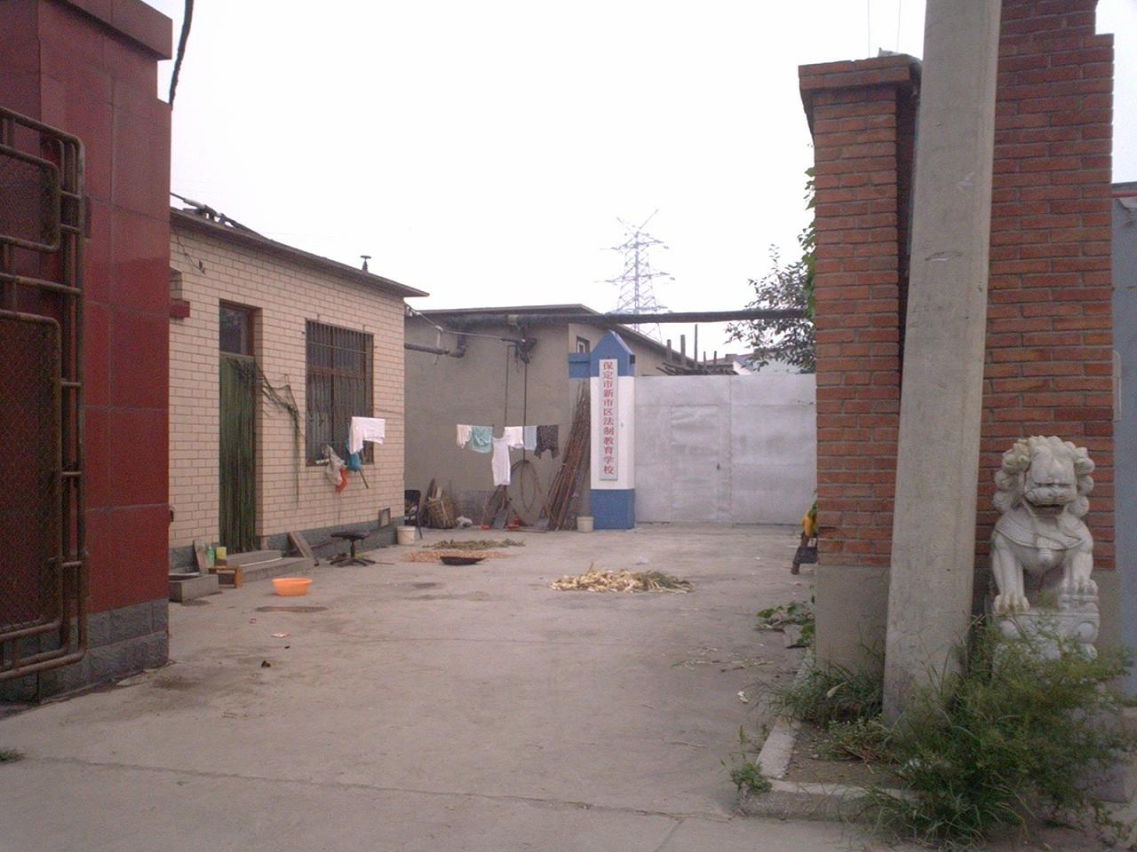 院内白色铁门是保定市新建洗脑班(白底红字牌子:保定市新市区法制教育学校)