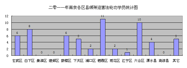 下表和下图为南京各区县绑架迫害法轮功学员的人数统计。