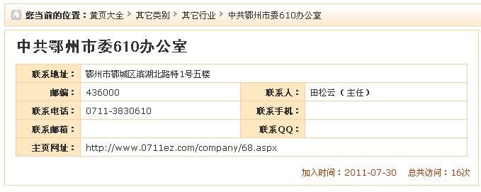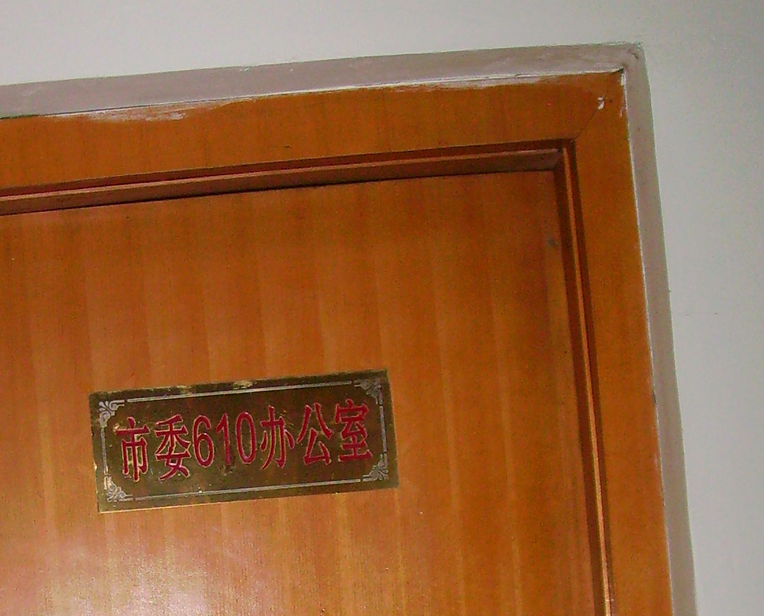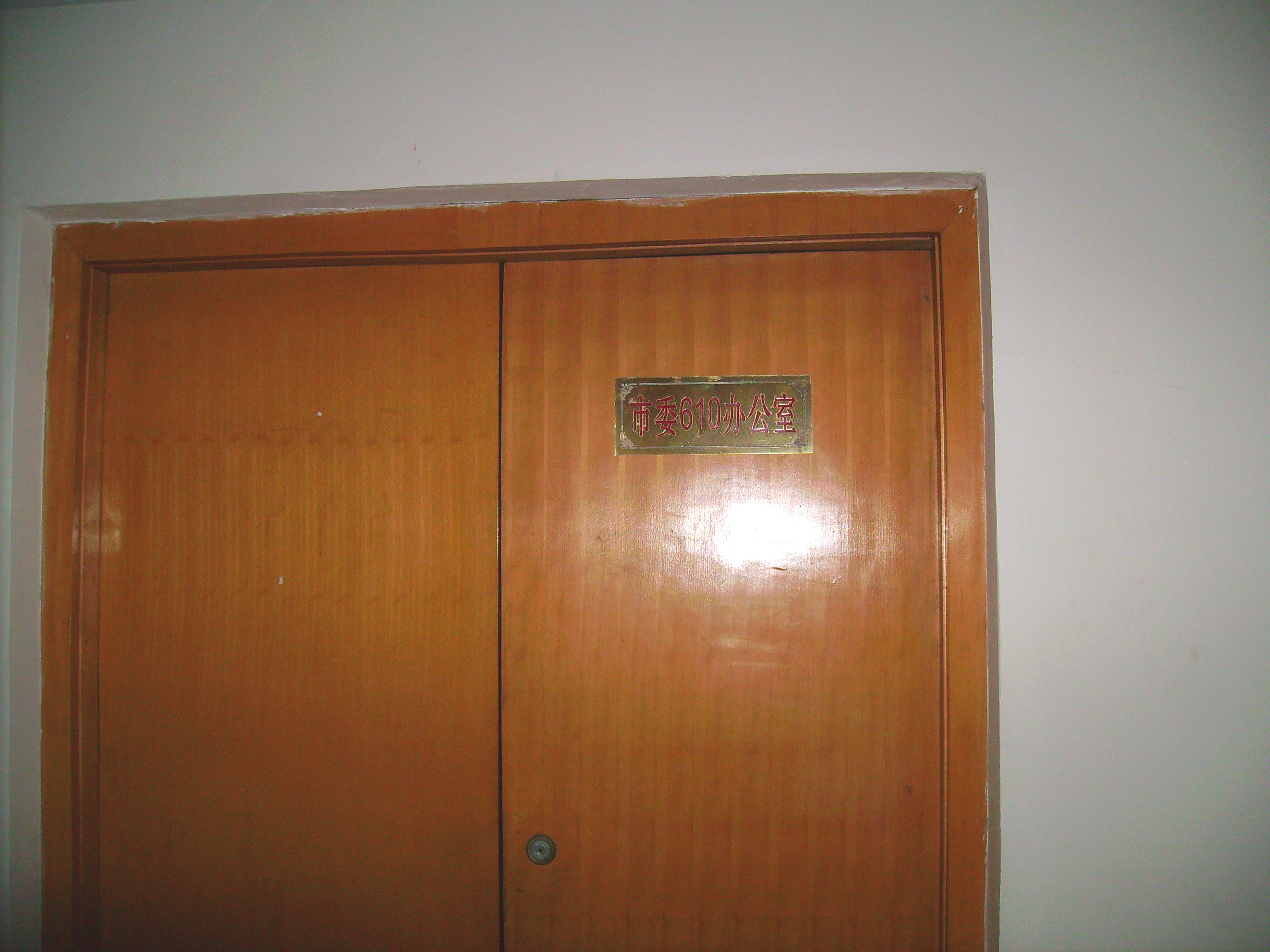 ![]() 鄂州市市委610办公室照片 | ![]() 牌上刻着“市委610办公室” |